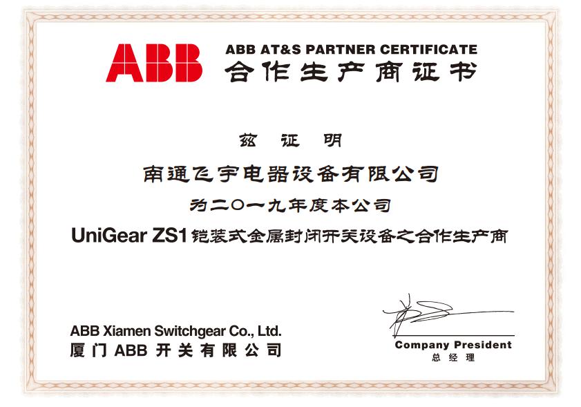 近日,南通飛宇電器設(shè)備有限公司獲得二零一九年度ABB開關(guān)有限公司合作生產(chǎn)商證書,為UniGear ZS1鎧裝式金屬封閉開關(guān)設(shè)備之合作生產(chǎn)商?,F(xiàn)本公司已獲得高新技術(shù)企業(yè),江蘇省民營(yíng)科技企業(yè),南通名牌產(chǎn)品,安全生產(chǎn)標(biāo)準(zhǔn)化,知名品牌ABB合作生產(chǎn)商等證書。